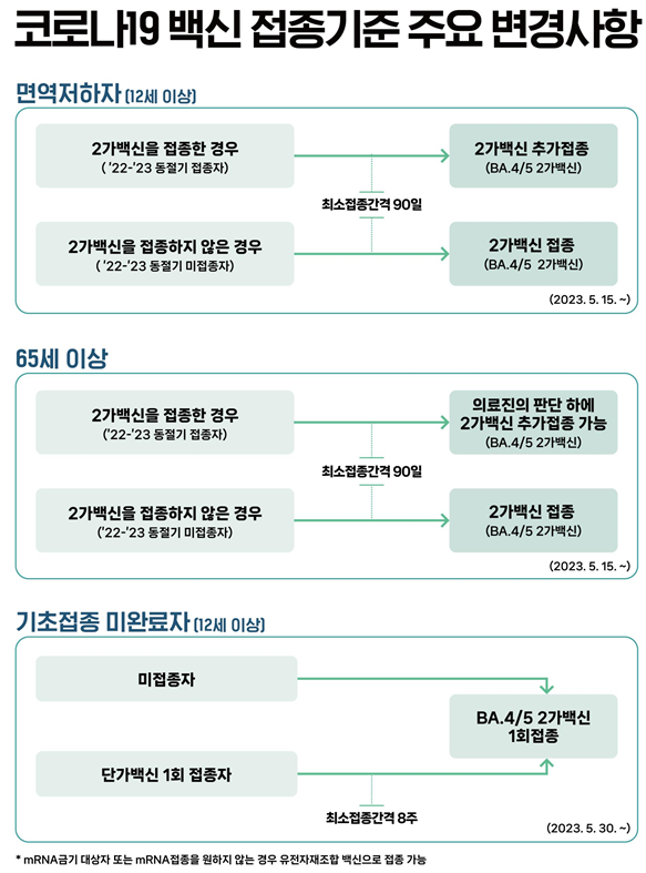 ▲ 2023년 상반기 코로나19 면역저하자 백신접종 안내. 5월 15일 사전예약 및 당일접종이 시작된데 이어, 5월 29일부터 예약접종이 시작됐다. [질병관리청 제공] |