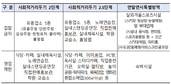 ▲ 집합금지 및 영업제한 대상. [출처= 중소벤처기업부] |