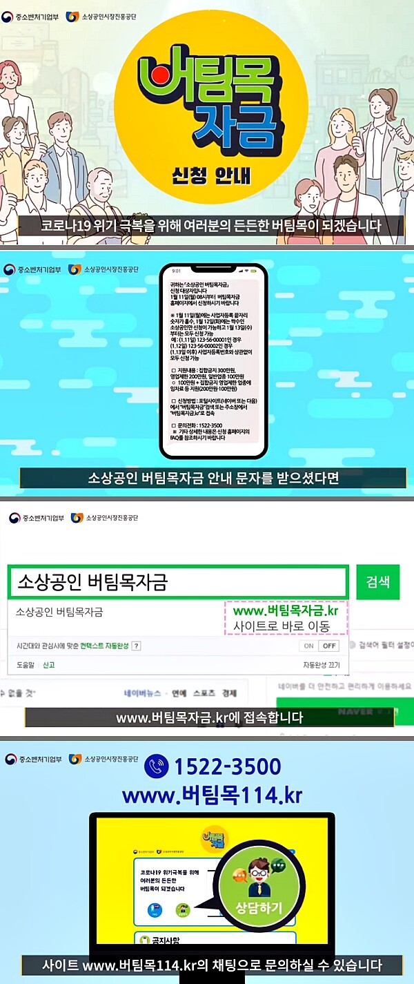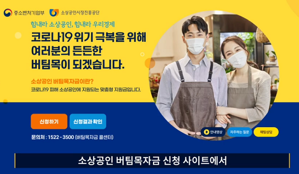 소상공인 버팀목자금 사업의 구체적인 내용은 전담 콜센터(1522-3500)에서도 안내받을 수 있다.