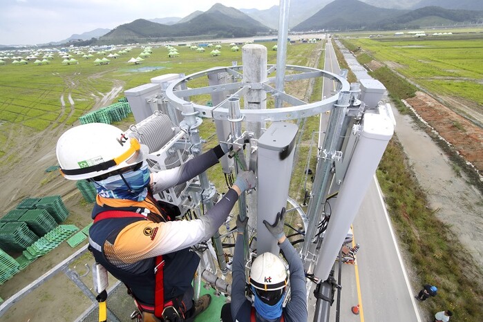 | ▲ KT가 '2023 새만금 제25회 세계스카우트잼버리'(이하 세계스카우트잼버리)의 성공적인 개최를 위해 안정적인 유무선 네트워크 구축과 방송회선을 제공한다고 지난 30일 밝혔다. 사진은 KT 직원들이 세계스카우트잼버리 행사장에서 통신 인프라를 구축하고 있는 모습. [KT 제공] |