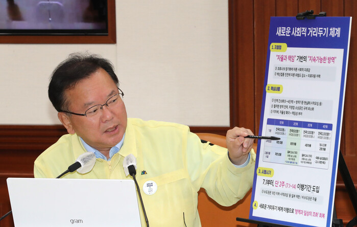 김부겸 국무총리는 20일 정부서울청사에서 열린 코로나19 중앙재난안전대책본부 회의 모두발언을 통해 “7월부터 적용할 새로운 사회적 거리두기 개편안을 확정했다”고 밝혔다.
