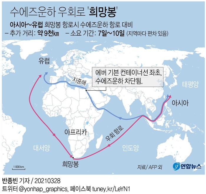 국내에서도 HMM이 1주일에 2척 가량 수에즈 운하를 지나고 있어 사태가 길어지면 손실을 피할 수 없는 상황이다.
