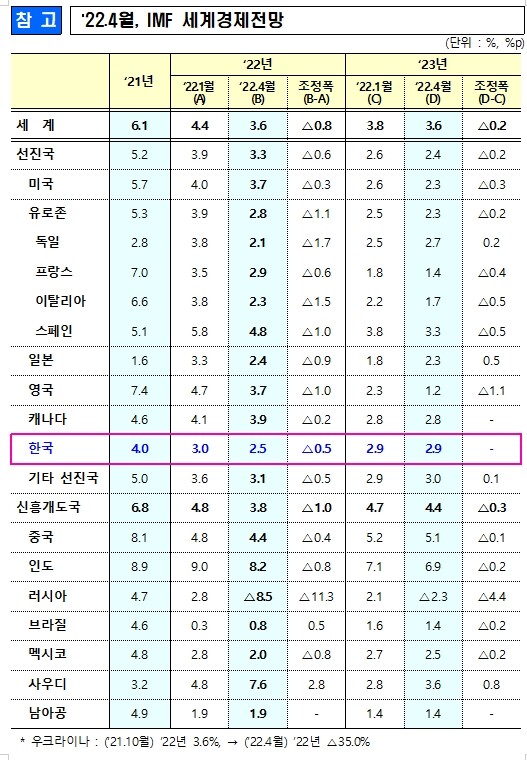 ▲ 2022년 4월 IMF 세계경제전망. [기획재정부 제공] |