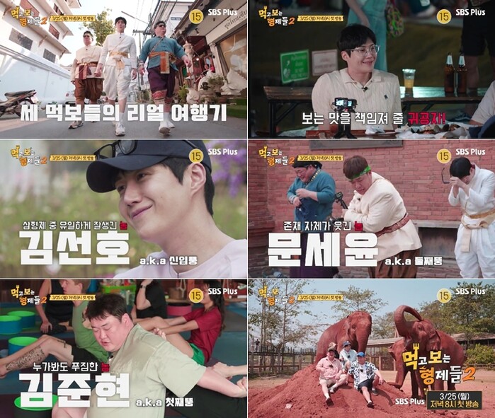 태국으로 떠난 김준현-문세윤-김선호의 유쾌한 케미와 초특급 먹방, 스케일이 커진 볼거리와 즐길 거리가 담길 E채널·SBS Plus의 공동 제작 예능 ‘먹고 보는 형제들2’ 첫 회는 25일(월) 저녁 8시 방송된다.