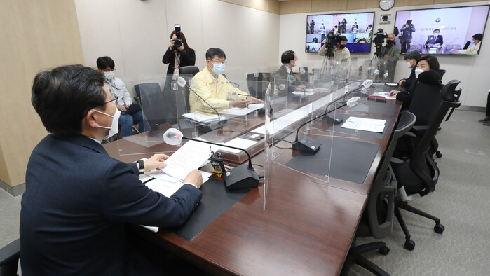 ▲ 권덕철 보건복지부 장관(왼쪽)이 지난 1일 오후 세종시 정부세종청사에서 '범정부 백신 도입 관리 TF' 1차 회의를 주재하며 발언하고 있다. 이날 회의에는 정은경 질병관리청장, 김진석 식품의약품안전처 차장, 최종문 외교부 2차관 등이 영상으로 참석했다. [사진= 연합뉴스] |