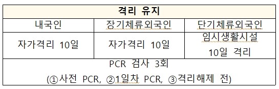 방대본은 현행 조치의 연장 외에도 해외유입의 사전 차단을 강화하기 위해 사전 PCR(유전자증폭) 음성확인서 적용 기준을 기존 음성확인서 발급일에서 검사일로 강화해 시행한다고 덧붙였다. ‘발급일 기준 72시간’에서 ‘검사일 기준 72시간’으로 변경되는 것이다.