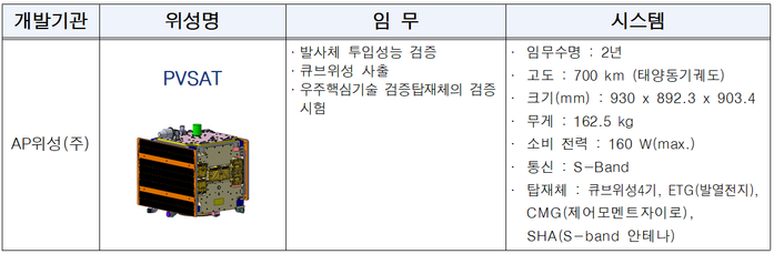 ▲ 성능검증위성 개요. [과학기술정보통신부 제공] |