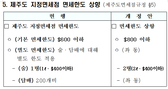 제주특별자치도 지정면세점의 면세한도도 상향된다.