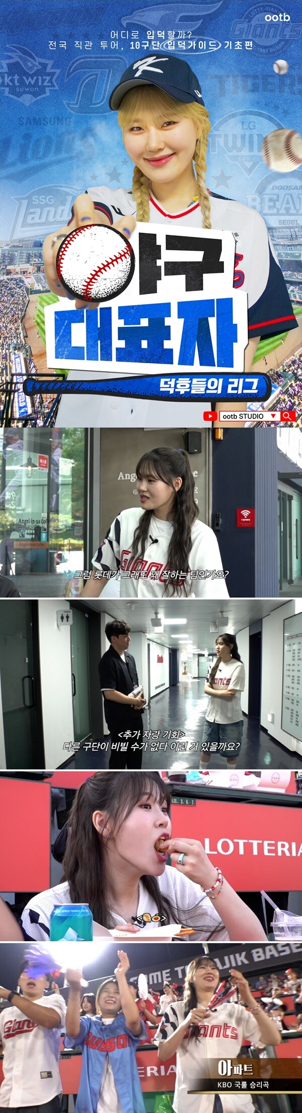 오오티비(대표 이현숙)의 새 예능 ‘야구대표자’는 대세 개그우먼 엄지윤이 프로야구 구단들의 특징을 알아보고 직접 경기 ‘직관’까지 해보는 야구 리뷰 예능이다. 오는 21일(일) 첫 공개되는 티빙 오리지널 ‘야구대표자 : 덕후들의 리그’ 속 이색 코너로, 엄지윤의 구단 리뷰 풀버전이 유튜브를 통해 공개되는 것이다. 티빙 오리지널 ‘야구대표자’는 야구 입문자부터 찐팬들을 대신해 열 명의 대표자가 구단 별 선수, 구장, 문화까지 낱낱이 파헤치는 본격 토론 예능. 21일부터 매주 일요일 5시 티빙을 통해 공개되며, 엄지윤의 구장 리뷰 풀버전은 오오티비 스튜디오(ootb STUDIO) 유튜브 채널에서 매주 일요일 오후 5시 동시 공개될 예정. 매주 일요일 저녁 야구 팬들에 한층 풍성하고 다채로운 재미를 선사할 계획이다.