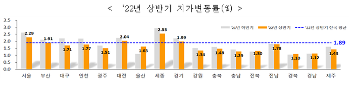 ▲ 2022년 상반기 지가변동률. [국토교통부 제공] |