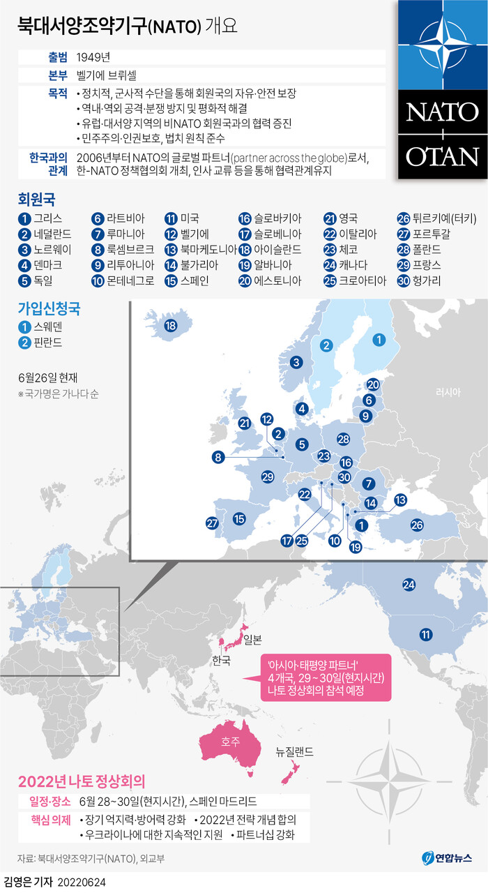 | ▲ 북대서양조약기구(NATO) 개요. [그래픽=연합뉴스] |
