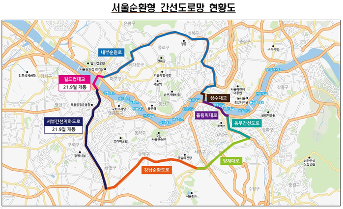 ▲ 서울순환형 간선도로망 현황도. [서울시] |
