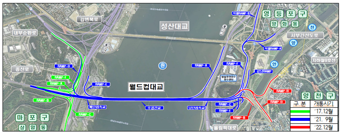 '월드컵대교' 본선 완공… 내부순환로까지 직접 연결, 교통량 21% 감소, 도시경관 업그레이드