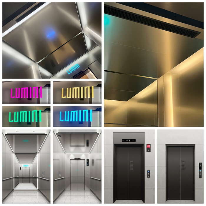 루미니 엘리베이터 디자인은 스톤과 메탈 소재를 활용해 미니멀한 아름다움을 추구했다.