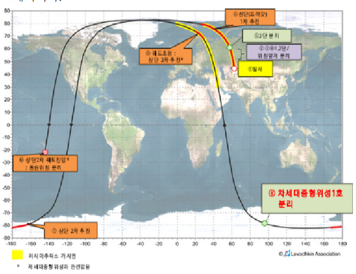 ▲ 소유즈 발사체 차세대중형위성1호 위성 지상궤적 [출처= 과학기술정보통신부] |