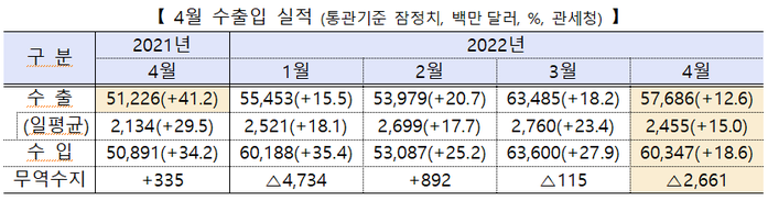 ▲ 4월 수출입 실적. [산업통상자원부 제공] |