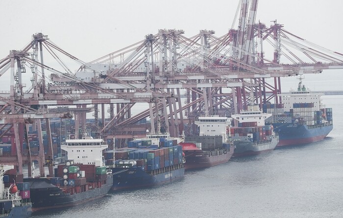 ▲ 수출 호조에도 에너지와 원자재 가격 급등으로 만성적인 무역수지 적자에 대한 우려가 커지고 있다. 지난 4월 21일 오전 부산항 신선대부두에서 컨테이너 하역작업이 진행되고 있다. [부산=연합뉴스] |