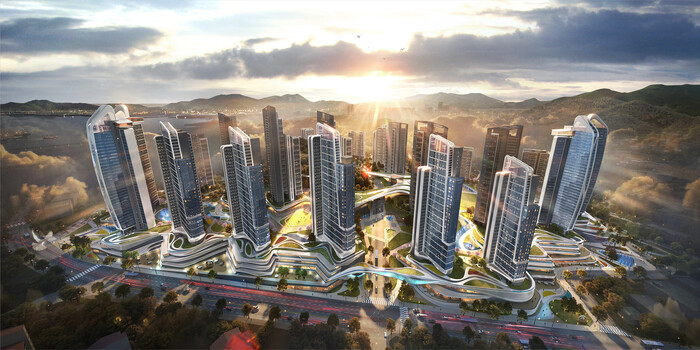 사업단은 조망 간섭 최소화를 위해 최대 203m의 동간 거리를 배치하고 지형의 특징과 문화를 담은 6대 디자인 계획을 수립했다.