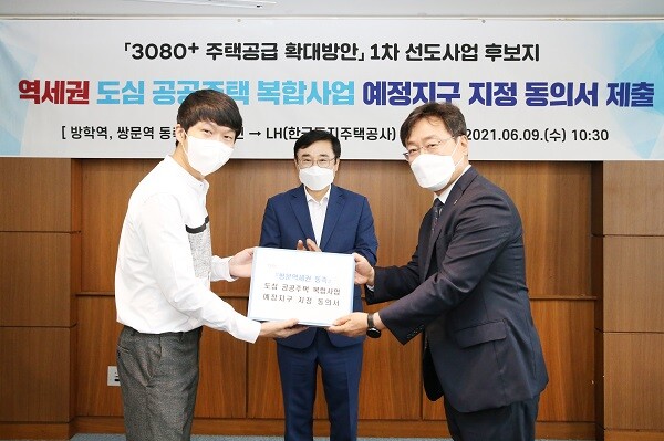 LH는 지난 9일 서울시 도봉구청에서 도봉구 내 3개 구역에 대한 '역세권 도심 공공주택 복합사업' 지구지정 제안을 위한 주민동의 서류를 접수했다고 10일 밝혔다.