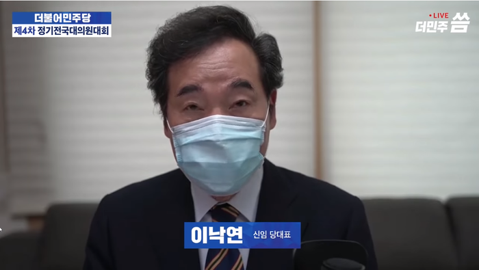 더불어민주당 이낙연 신임 당대표는 민주당 정기전국대의원대회에서 대표로 선출된 직후 ‘더불어민주당 유튜브 채널 씀’(더민주씀)을 통해 행한 온라인 수락연설을 통해 이같이 일성을 전하며 “코로나 전쟁에서 승리하고 국민의 삶을 지키겠다”고 강조했다.