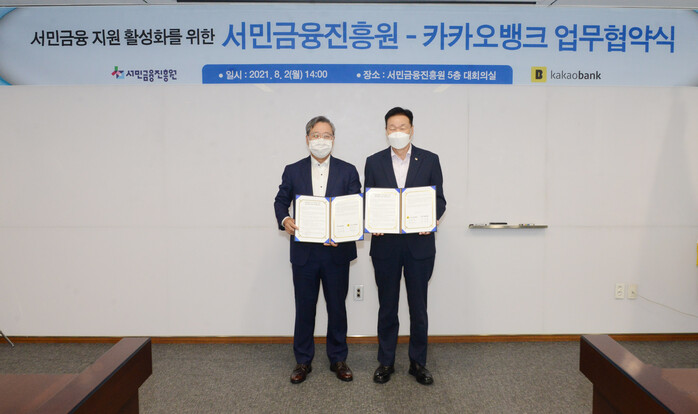 카카오뱅크(대표 윤호영)는 서민금융진흥원(원장 이계문, 이하 서금원)과 서민금융지원 활성화 업무협약을 체결했다고 2일 밝혔다.