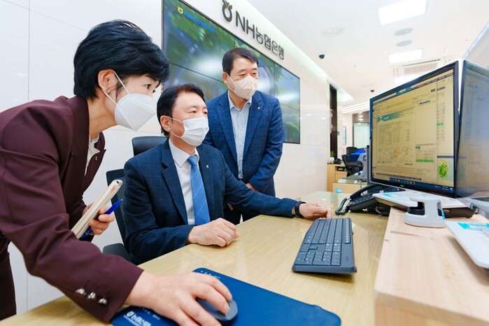 | ▲ 권준학 NH농협은행장은 지난달 30일 일선 영업점을 방문해 전산 모니터링을 직접 실시하며 철저한 내부통제 점검을 당부했다. [사진=NH농협은행 제공] |