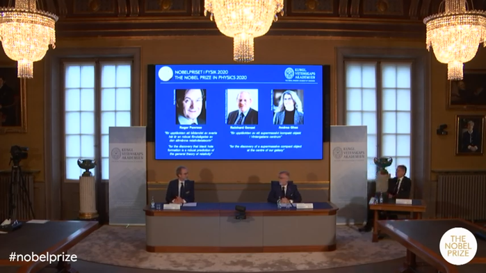 | ▲ 2020 노벨 물리학상 발표 모습. [출처= 노벨상 홈페이지] |