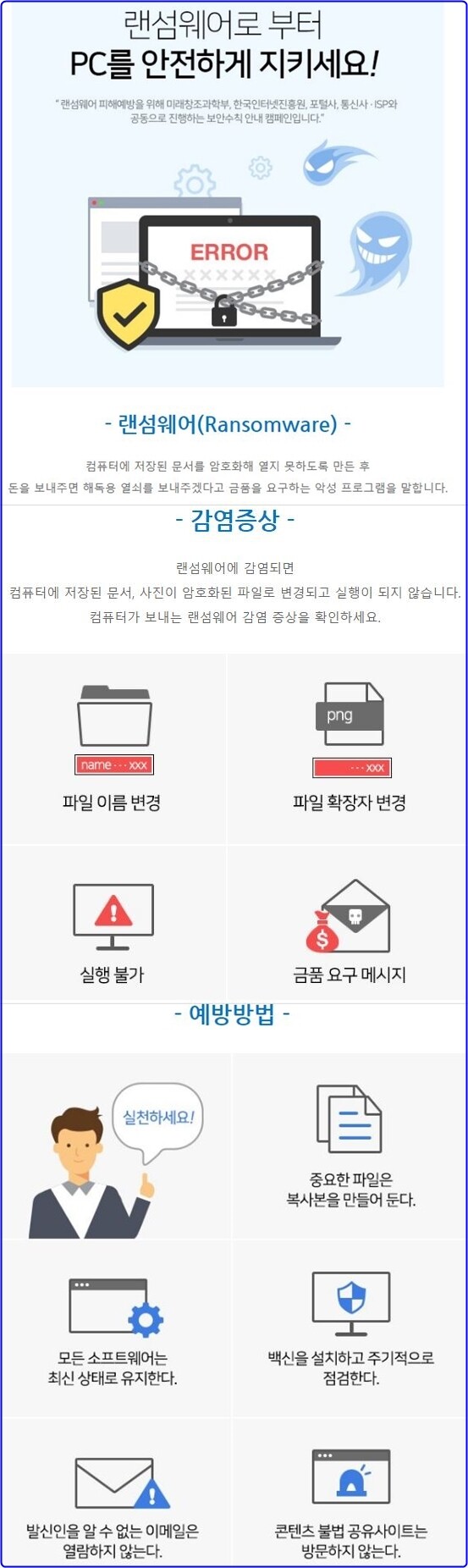노모어랜섬 같은 국제 공조 대응시스템과 보호나라, 보안업체들의 랜섬웨어 예방책과 대처법을 숙지해야 낭패를 줄일 수 있다.