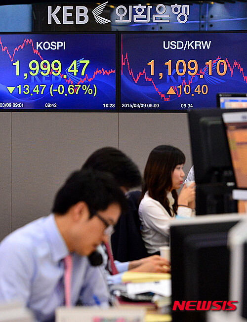 다만 원달러 환율과 별개로 국제 외환시장에서 달러화가 당분간 강세를 보일 것이라는데는 별로 이견이 없는 듯하다. 당장 유로화가 유럽중앙은행의 양적완화 개시로 달러에 비해 상대적 약세를 보일 것이 점쳐진다. 유럽중앙은행은 디플레이션 조짐이 나타나고 있는 유로존의 경기를 되살리기 위해 매달 600억 유로의 채권을 매입하는 방식으로 양적완화를 실시한다고 밝혔다.