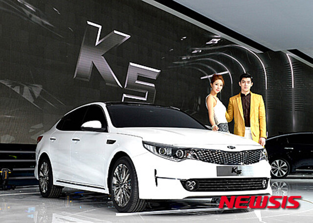 한편 기아자동차는 2일 경기도 고양시 일산 킨텍스에서 열린 2015 서울모터쇼에서 신형 K5 모던 스타일을 공개했다. 오는 12일까지 킨텍스에서 외부만 공개되는 K5 신형은 ‘두 개의 얼굴, 일곱 가지 심장’을 가장 큰 장점으로 내세우고 있다. 차량 전면부 형태가 모던(MX)과 스포티(SX) 두 가지 스타일이다. '일곱가지 심장'은 K5의 파워트레인이 2.0ℓ 자연흡기엔진부터 플러그인 하이브리드모델까지 7가지로 다양하다는 뜻이다. 기아는 3개월 후에 내장가지 모두 공개할 예정이다.