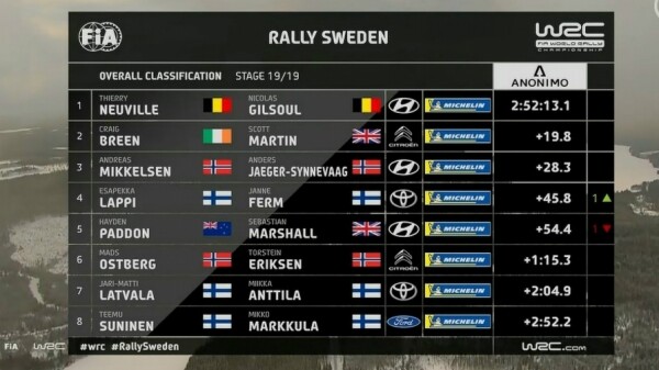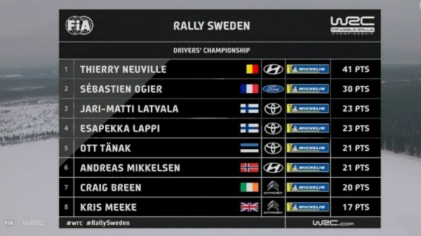 설원에서 펼쳐진 스웨덴 랠리에서 티에리 누빌은 안정적인 레이스 운영으로 초반부터 선두를 달렸다. 이후 막판까지 강력한 집중력을 발휘해 험로와 각종 돌발 상황을 헤쳐나가며 소속팀에 우승컵을 안겼다.