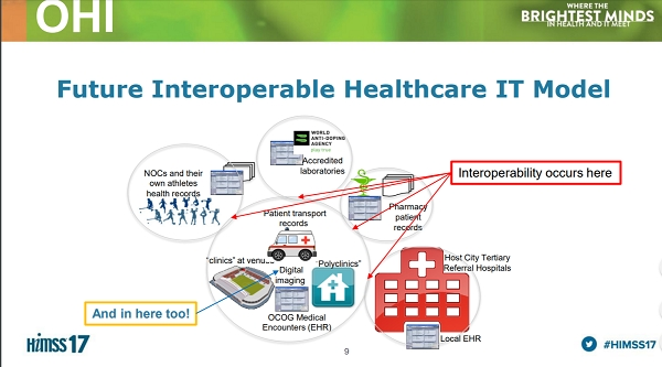 선수가 외과 수술을 요해 현지의 제3병원으로 이송되어야 할 경우에도 OHI 상호운용 서비스를 통해 필요한 진단 및 치료 정보를 먼저 얻을 수 있다. 수술 후에는 업데이트된 의료 기록이 해당 선수의 자메이카 EMR 시스템에 올라가 선수가 귀국했을 때 현지에서 후속 의료 조치를 받을 수 있다.