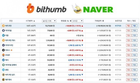 빗썸은 16일 ‘암호화폐 거래 시세 제공 서비스’를 위해 네이버와 제휴를 맺는다고 밝혔다. 빗썸에서 거래되는 암호화폐 시세를 네이버 API(애플리케이션 프로그램 인터페이스)와 연동해, 실시간으로 신속하고 정확한 정보를 제공할 예정이라는 것이다. 시세 제공 서비스는 3월 중 오픈할 예정이며, PC와 모바일에서 모두 이용이 가능할 전망이다.