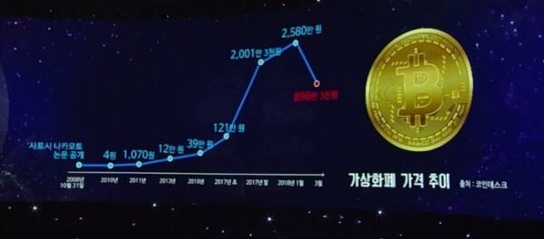 2010년 비트코인 하나의 가격은 4원, 첫 거래는 피자 2판을 1만개에 구입한 것이었다. 그런데 이 비트코인의 가격은 2017년 초 100만 원 대로 급상승했고, 올해 1월에는 2580만 원까지 가치가 상승했다.