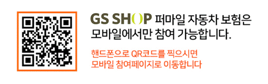 ‘퍼마일 자동차보험’은 GS샵 모바일 앱에서만 보험료 산출 및 가입을 할 수 있다. GS샵 앱에서 ‘자동차보험’을 검색하거나, 아래 QR코드를 스캔하면 해당 상품을 만나볼 수 있으며, 보험료 산출 고객을 대상으로 1천명에게 추첨을 통해 적립금 1만원 증정 이벤트도 진행한다.