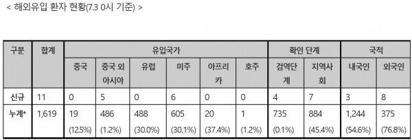 오늘(3일) 0시 기준 해외 유입 확진자 11명의 추정 유입국가는 중국 외 아시아 5명, 미주 6명이다. 아시아 5명은 파키스탄 3명, 카자흐스탄과 러시아 각 1명이었다.