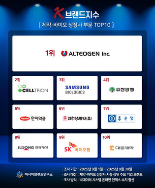 K-브랜드지수 제약·바이오 상장사, 알테오젠 1위 유지…대웅제약·한미약품 TOP1...